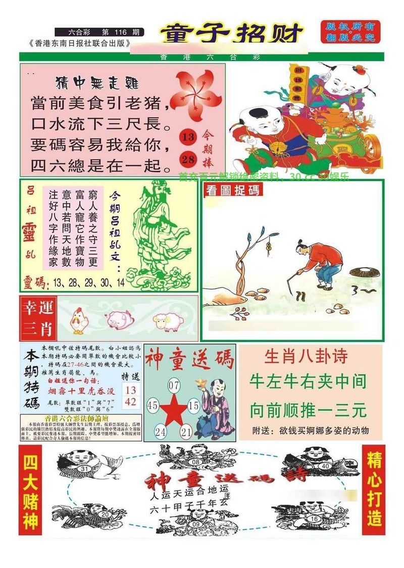 117期:特码预测版/六合独家料/小财神送码/三字联/曾道人玄机字